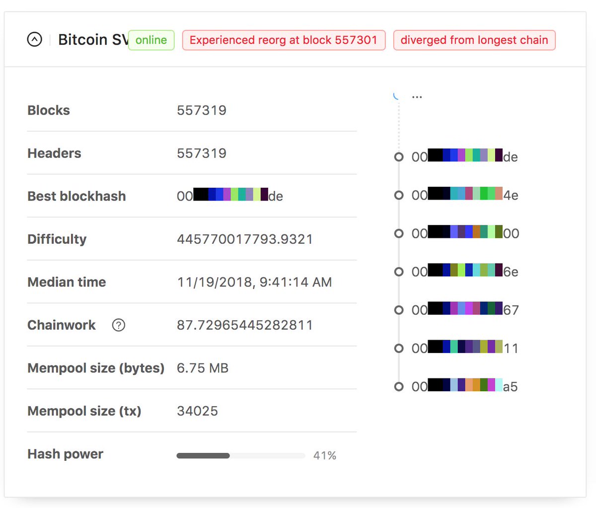 18 block re-org on $BSV is quite serious, exchanges might start increasing confirmations with deposits and potentially consider delisting it.https://twitter.com/arjunblj/status/1064566646596165633 …