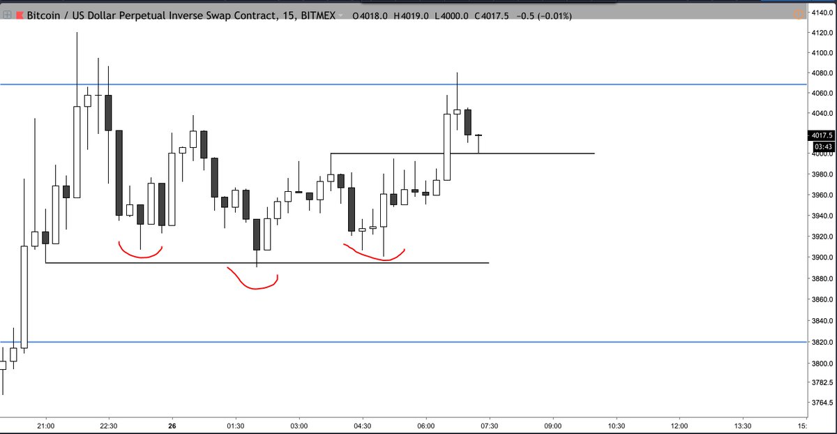 Perfect retest of a support turned resistance. If the hourly closes below 3888, think we go back down to retest the lows.