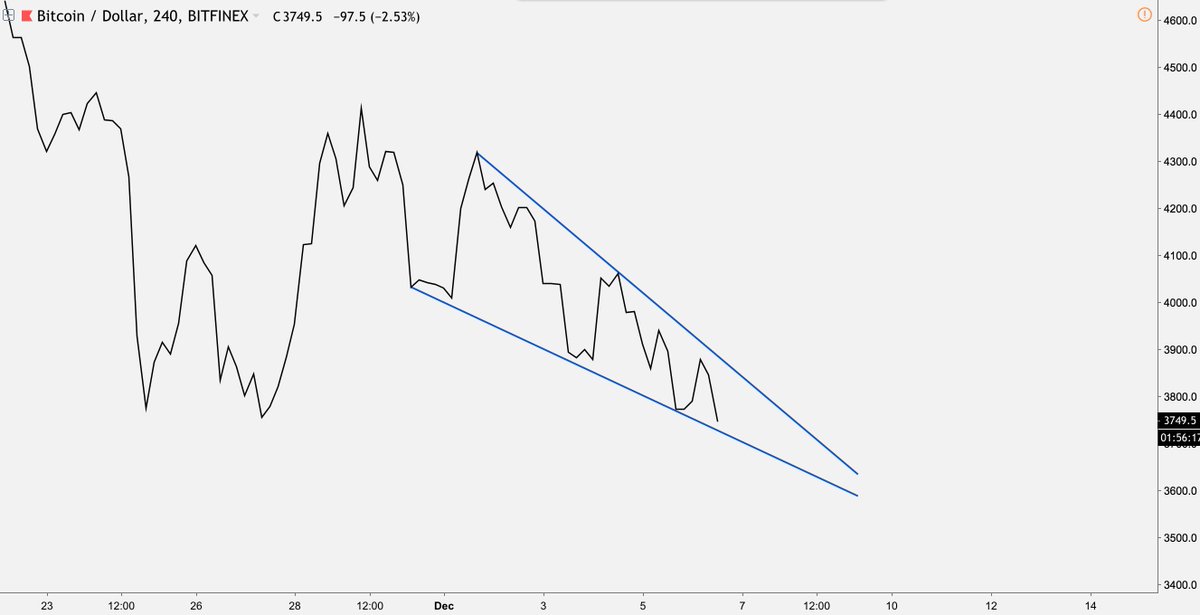 That’s a spring down to 3.2 then we continue the falling wedge and breakout