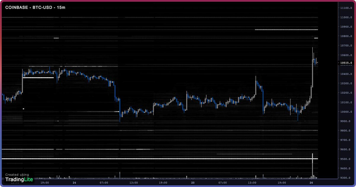 Mex slowly building support @ 10450 after this move. 2x500 BTC walls (10.3 & 10.5) chewed up on Binance. No significant sell pressure on Coinbase until 10.8-10.9 I'm betting on upside continuation, and just know if this goes down I will have made less money than I could have.pic.twitter.com/MhYGUSh3Eh