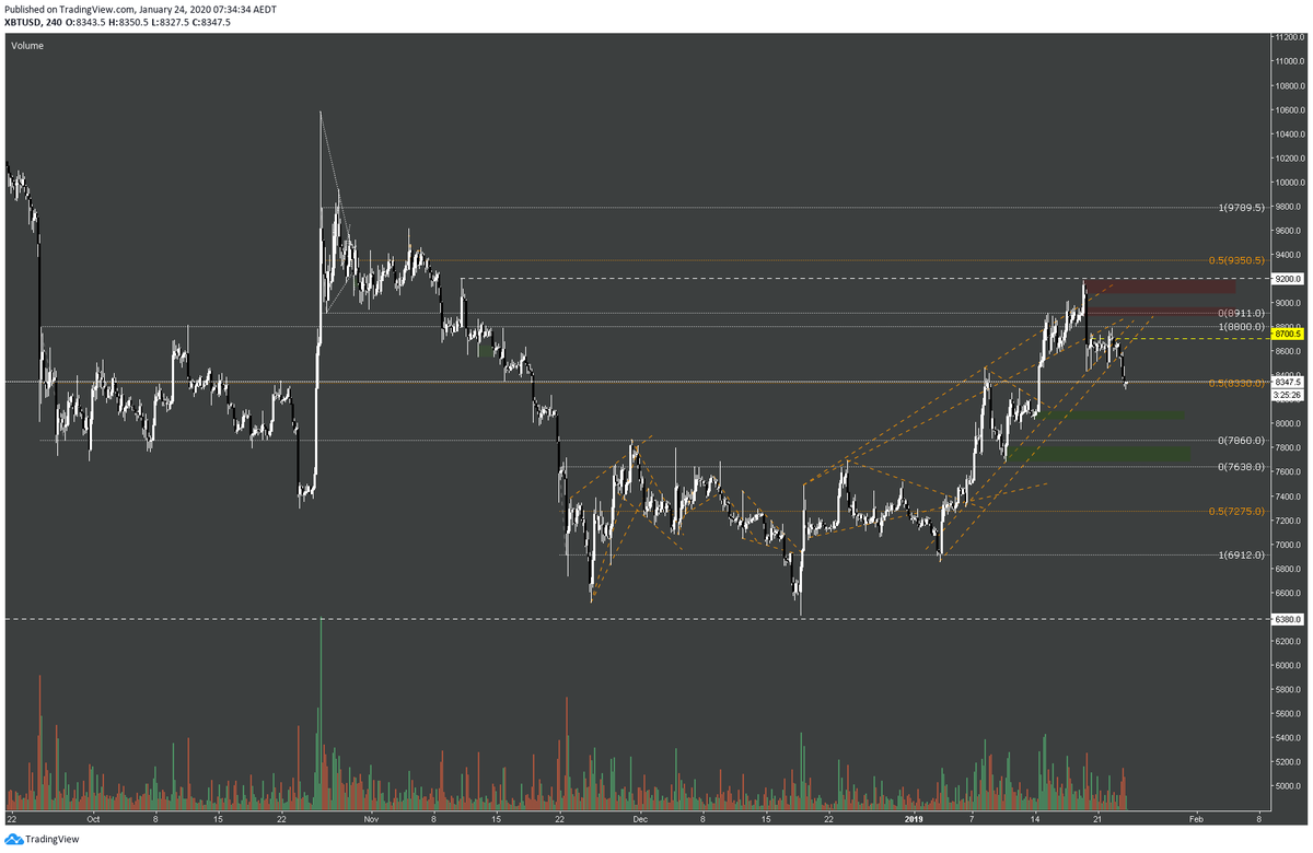 Finally closed this short completely at 8300-8320. Ended up adding a stack on the spike above mO 8600-8800 prior to the breakdown for an 8900 basis. Happy overall with the short and the 8330 confluence with the October open. Think we bounce and test 8500, but I'm flat for now.pic.twitter.com/JCEqerPFZ5