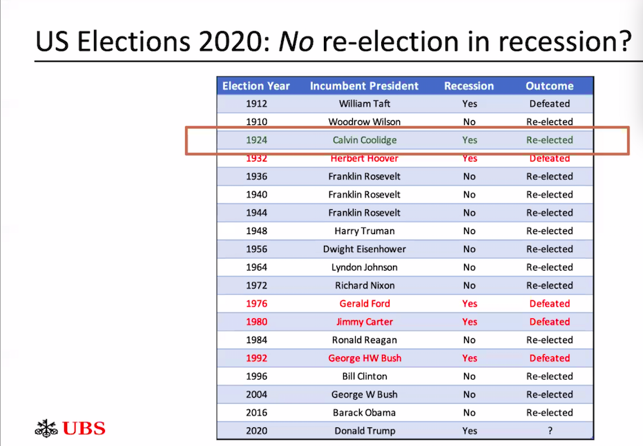 Apparently, only 1 US president was re-elected in a recession. Will @realDonaldTrump be the second?pic.twitter.com/qVWHJrmO2T