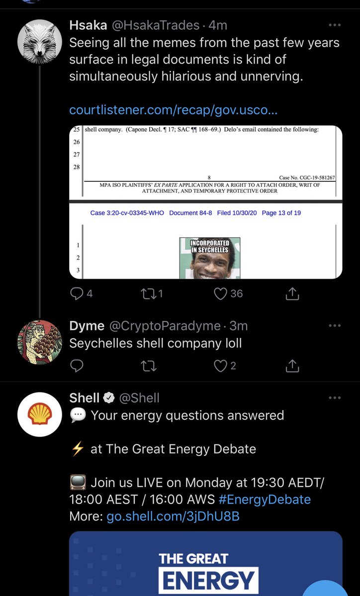 Posting memes on Twitter is one thing. Posting memes and joking about the Seychelles regulatory environment in a more professional business setting is just plain stupid.