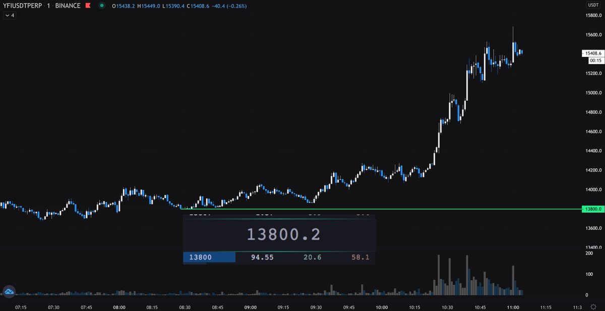 I longed from his bid with 30x leverage . Thank God for this yfi whale. Made my day . Shorted again when 15k was about to break out. Yfi is so fucking beautiful to trade