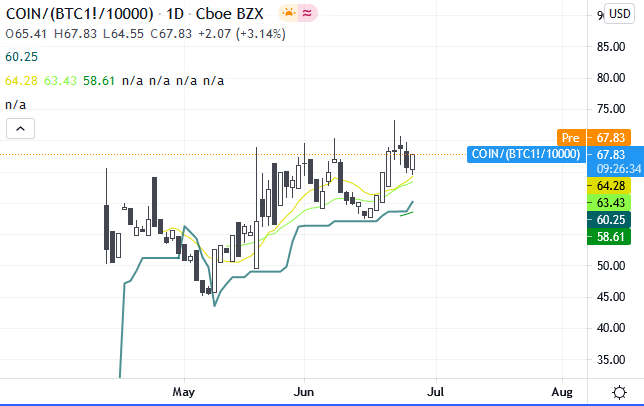 Pretty equal to BTC movement from the high in terms of % though, but the difference in dollars. She’ll make a lot off this I bet in the long term