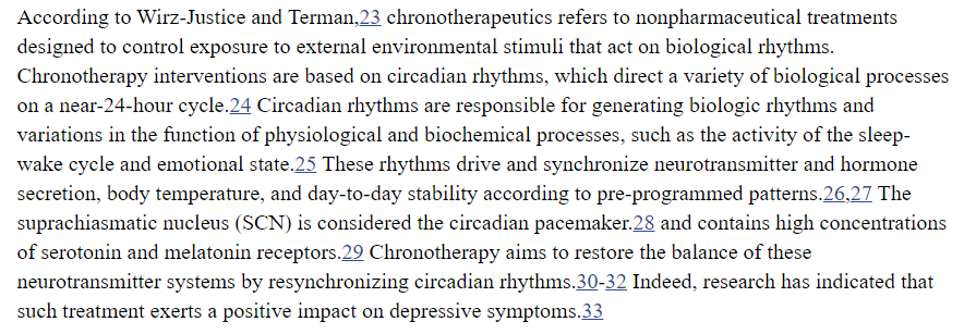 re: temp sleep deprivation having antidepressant effects -- you may find this paper on chronotherapy relevant and of interest (snippet in picture) https://www.ncbi.nlm.nih.gov/pmc/articles/PMC5447205/ …pic.twitter.com/wSQyx1oqZi