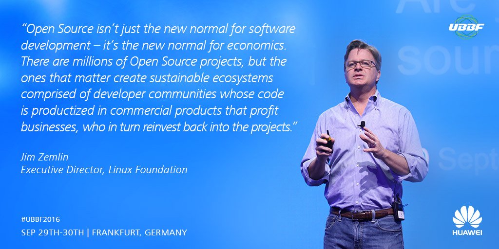 Jim Zemlin von @linuxfoundation spricht auf dem #UBBF2016 über die Hausaufgaben von Telkos in Sachen #Cloud und #OpenSourcehttps://twitter.com/Huawei/status/781814629345267712 …