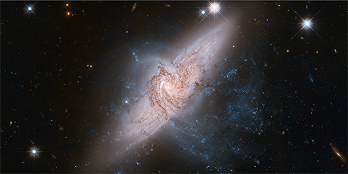 #SpaceTelescopeQuiz time! What causes the cross-shaped pattern radiating from the bright bluish star in the lower right of this Hubble image? Respond in the comments and check back tomorrow for the answer. Credit: NASA, ESA, J. Lotz &HFF Team (STScI).pic.twitter.com/JHcwwtVDDh