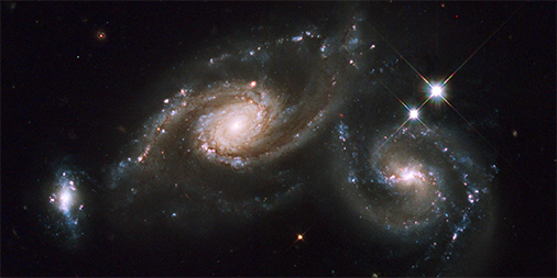 Don’t be fooled: This pair of galaxies isn’t actually colliding. They’re millions of light-years apart, and appear close due to a chance alignment from our point of view. Learn more about NGC 3314: https://bit.ly/2NEKny6 pic.twitter.com/SVH6mnMI4R