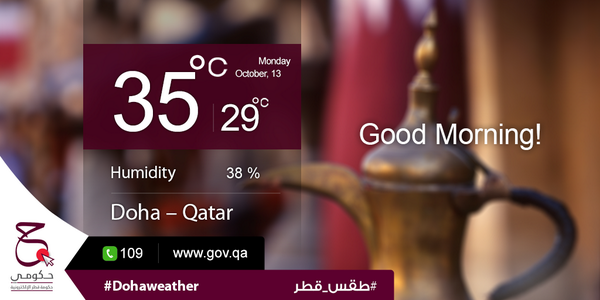 Today's highest temp: 35ºC, lowest temp: 29ºC and humidity: 38%. #Hukoomi #Qatar #DohaWeatherpic.twitter.com/1RvnJlF0xD