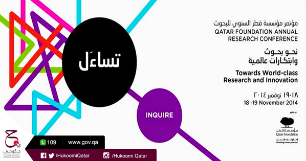 @QF_ARC 2014 "Towards World-Class Research & Innovation" will take place @qncc from 18 - 19 Nov. #ARC2014 #Qatar @QFpic.twitter.com/NHEgZwGVtE