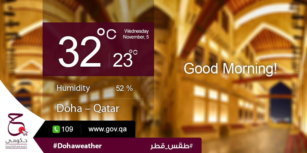 Today's highest temp: 32ºC, lowest temp: 23ºC and humidity: 52%. #Hukoomi #Qatar #DohaWeatherpic.twitter.com/zaoned5cKB