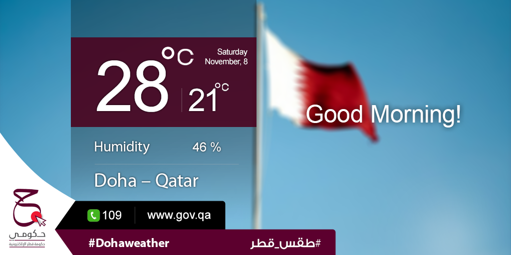 Today's highest temp: 28ºC, lowest temp: 21ºC and humidity: 46%. #Hukoomi #Qatar #DohaWeatherpic.twitter.com/esxrF0f60P