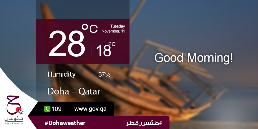 Today's highest temp: 28ºC, lowest temp: 18ºC and humidity: 37%. #Hukoomi #Qatar #DohaWeatherpic.twitter.com/fKKZ24niAb
