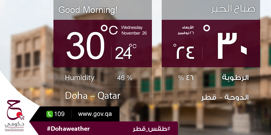 درجة الحرارة اليوم الكبرى 30 و الصغرى 24 و نسبة الرطوبة 46 %pic.twitter.com/m9zsFd5fAz