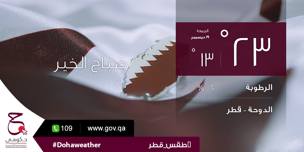درجة الحرارة اليوم الكبرى 23 و الصغرى 13 و نسبة الرطوبة 60 % #حكومى #قطر #الدوحةpic.twitter.com/XADGvoYyNr