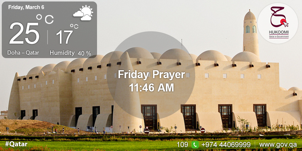 It's now Duhr athan time 11:46 AM according to #Doha city local time #Hukoomipic.twitter.com/YQWIghawEo