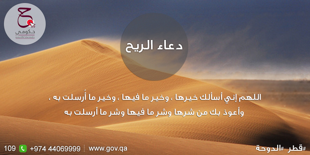 دعاء الريح: "اللهم إني أسألك خيرها ، وخير ما فيها ، وخير ما أُرسلت به ، وأعوذ بك من شرها وشر ما فيها وشر ما أرسلت به"pic.twitter.com/E8sHflpyFh