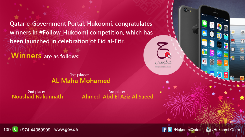 Hukoomi #Qatar congratulates winners in #Follow_Hukoomi competition
