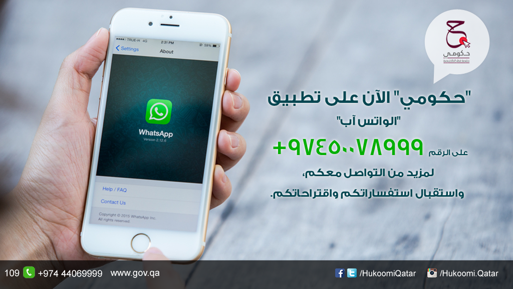 "حكومي" الآن على تطبيق "الواتس آب" على الرقم +97450078999 لمزيد من التواصل معكمpic.twitter.com/e6srcUpfLP