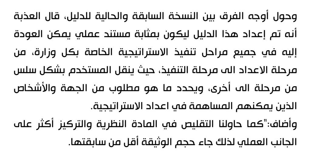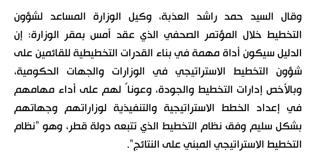 لتصحيح الخلط الحاصل بمراحل التحديث أوضح بانقضاء مرحلة بناء قدرات التخطيط ضمن الإطار الزمني لبناء الأسس باستراتيجية التنمية الوطنية الأولى ويتوجب أن يتضمن الدليل بالطبعةالثانيةمعطيات تجسيد الكفاءةالحكوميةومستلزماتها كمتطلب رئيسيي لاستراتيجيةالتنمية الوطنية الثانية. #حكومة_قطرpic.twitter.com/jiDrpEgSDu