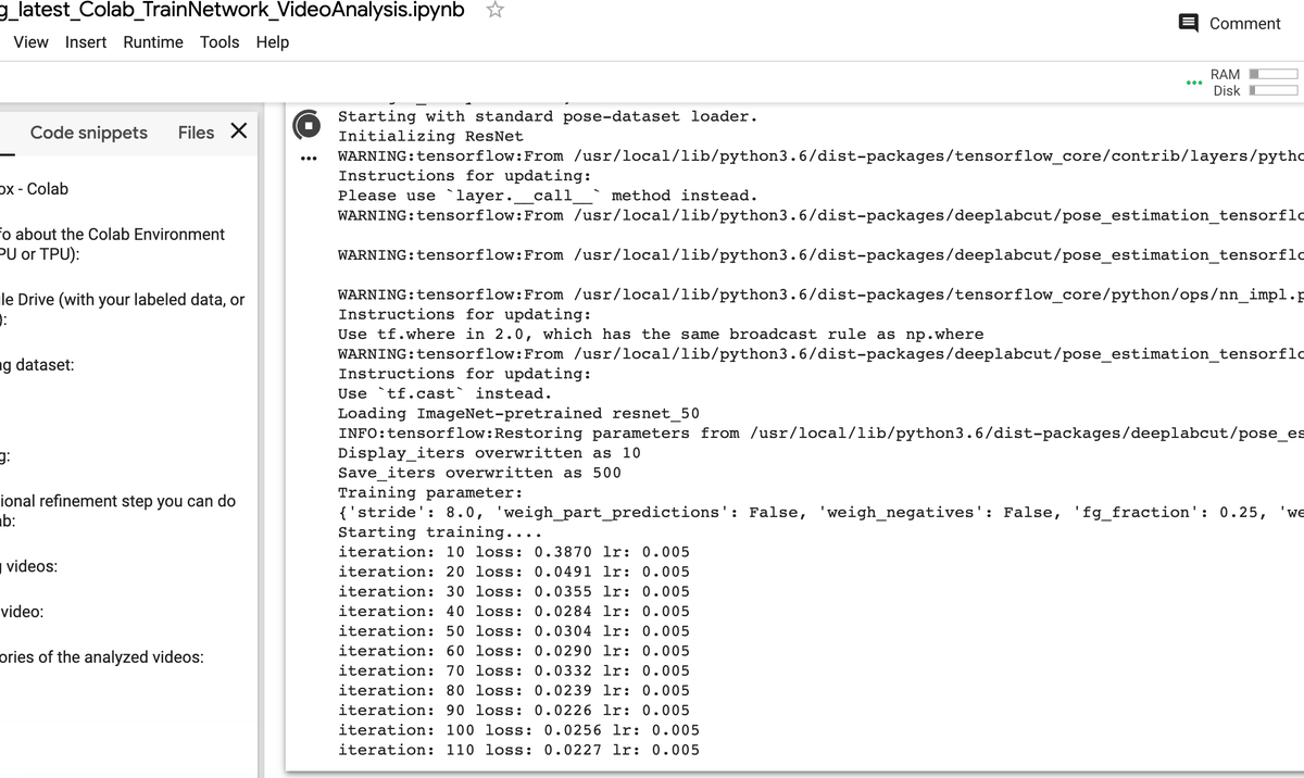 Finally make small progress on #deeplabcut by using Google's GPU... I was struggled to set up CUDA and GPU control on my analysis computer but I'll just let Google do the work for me now xD Hope will see a nicely trained network tomorrow morning 🙃pic.twitter.com/iUgzSZEoSz