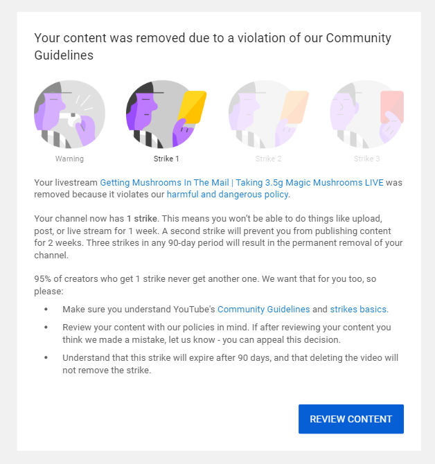 @TeamYouTube this is the second time I've gotten a community strike yet last time it was appealed. Both videos were up for a FULL WEEK. you pull them down freezing my channel then reinstate it... who can I talk to at YouTube to FULLY UNDERSTAND your vague guidelines? @YouTubepic.twitter.com/v6KpKE0HQE