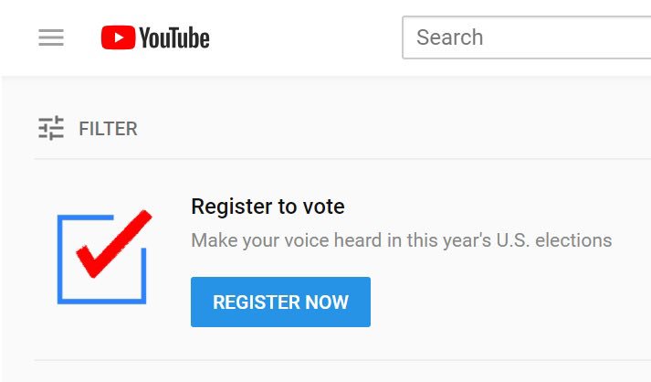 This is intriguing @YouTube @TeamYouTube @Google. You weren’t pushing “Register to vote” when you thought Barack, Hillary, & the Democrats were a shoo-in. What changed? 🤔 #Election2018 #Elections2018 #MidTermElection #MidTermElections #MidTermElection2018 #MidTermElections2018pic.twitter.com/fzccFp6w1x