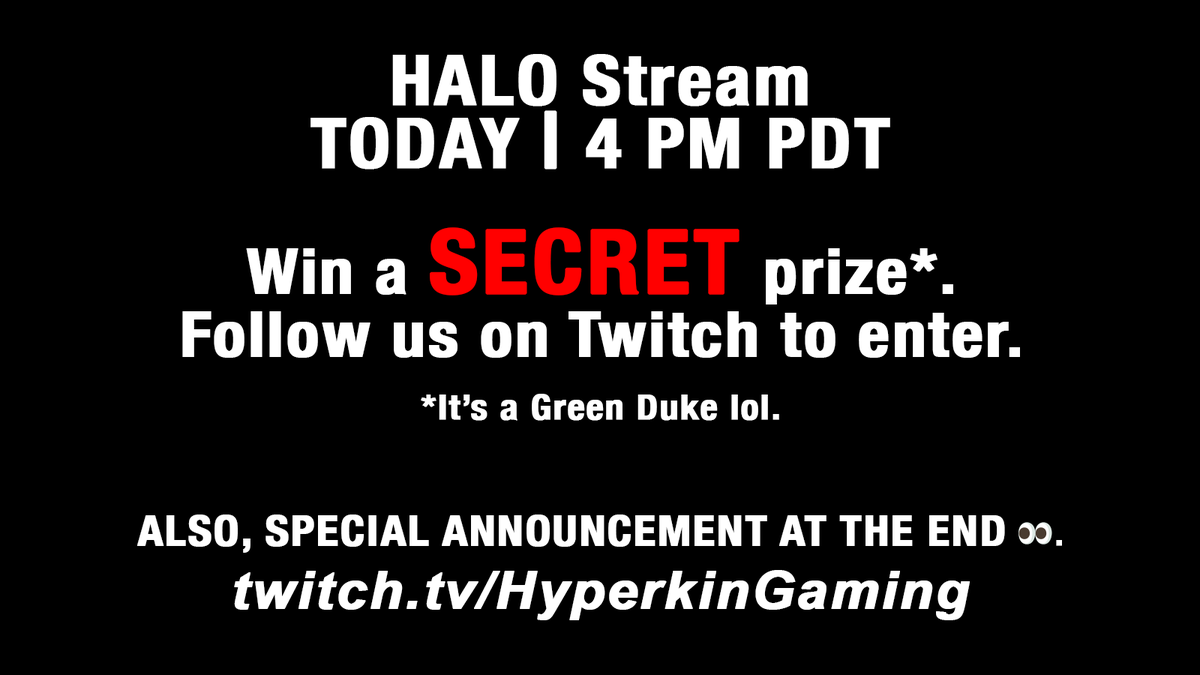 stream at 4pm PDT today over at https://www.twitch.tv/hyperkingaming