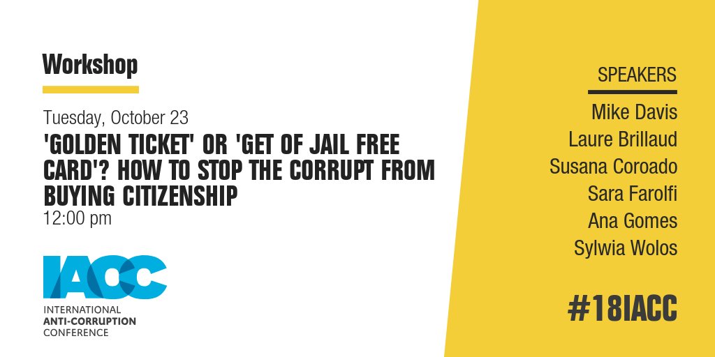 Don't miss > #GoldenVisas. How to Stop the Corrupt from Buying Citizenship. With @AnaGomesMEP, Susana Coroado (@transparenciapt) and @michaelpmdavis (@Global_Witness) and more! + info: https://sched.co/FzmT #18IACCpic.twitter.com/zUES2fYEp1