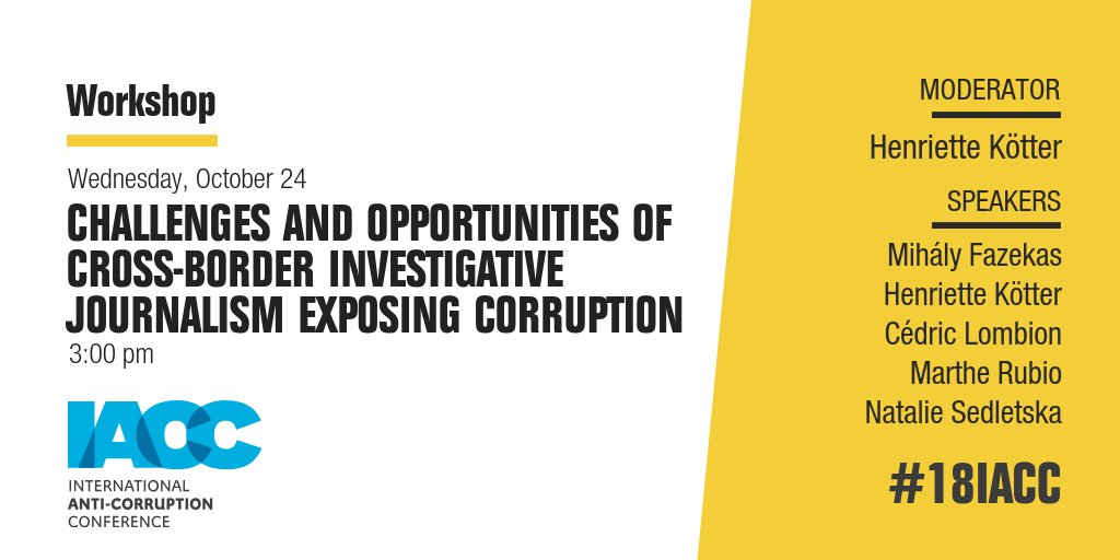 Next > A Bright Future? Challenges and Opportunities of Cross-Border Investigative #Journalism Exposing Corruption. W/ @_HishamAllam from @ICIJorg, @natasedletska, @martherubio from @gijn, Agatino Camara from @CIFAR_News and @samuelacker. + info: https://sched.co/FzoN  #18IACCpic.twitter.com/bxBEZ2mNV6