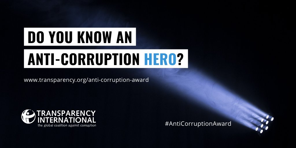 Do you know an anti-corruption hero? Nominate someone today! Winners will be announced at the #IACC2020 in Seoul, Korea. #AntiCorruptionAward 👉 Apply here: https://fal.cn/36BMf pic.twitter.com/DHdq9l7Rl0