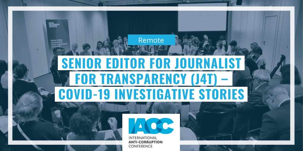 We are looking for a Senior Editor to work on the Journalist for Transparency (J4T) initiative for the @IACCseries. The Editor will provide editorial support to the Young Journalists reporting on #COVID19 & oversee the editorial process. Deadline:10 May