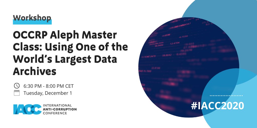 2/ Dive into @OCCRP’s #Aleph, one of the world’s largest data archives for investigative journalism with leak librarian @pudo on Tuesday 1 December. #IACC2020 > https://19thiacc.pathable.co/meetings/virtual/q5ukDyboXDZW7vLHr …pic.twitter.com/dH1LH1Ec0R