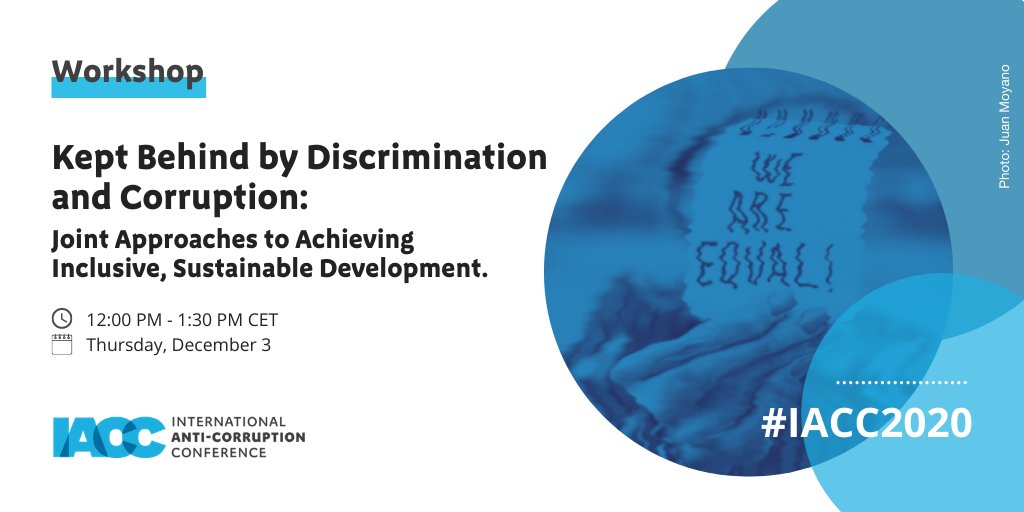 In 20 mins! > Join the session "Kept Behind by Discrimination and Corruption: Joint Approaches to Achieving Inclusive, Sustainable Development." with @anticorruption, @EqualRights, @TI_PNG, @hazelfeig, @AcGuatemala & @AlexanderFaludy. #IACC2020