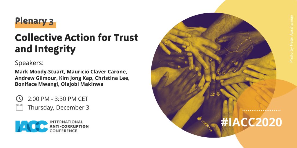 Up next ➡️ Plenary 3: Collective Action for Trust and Integrity. W/ Mark Moody-Stuart, Chairman of @globalcompact, Mauricio Claver Carone (@the_IDB), @_AGilmour from @BerghofFnd, Kim Jong Kap, Christina Lee (@Hostwriter), @makinwa7 & Kenyan activist @bonifacemwangi #IACC2020pic.twitter.com/i4Vzv343Z1
