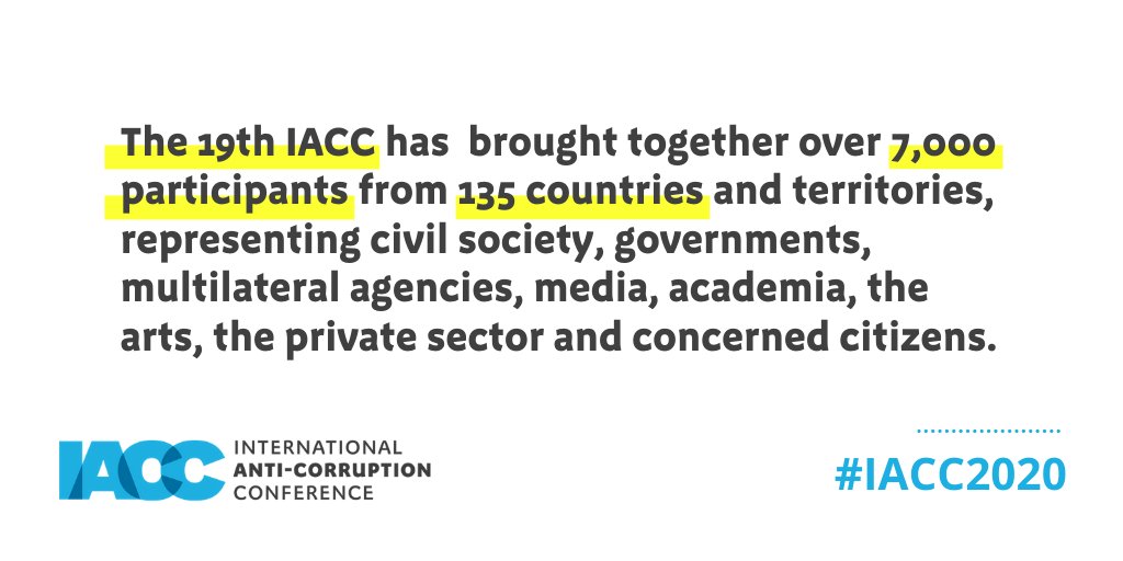 The #IACC2020 has brought together over 7,000 participants from 135 countries & territories, representing civil society, governments, multilateral agencies, media, academia, the arts, the private sector & concerned citizens.