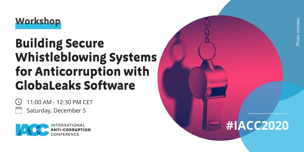In 1 hour! > Join @GlobaLeaks team and experts from @EarthLeagueInt & @PODERlatam, in a session to understand the power of anonymous digital whistleblowing & technologies that allow citizens to report corruption. #IACC2020