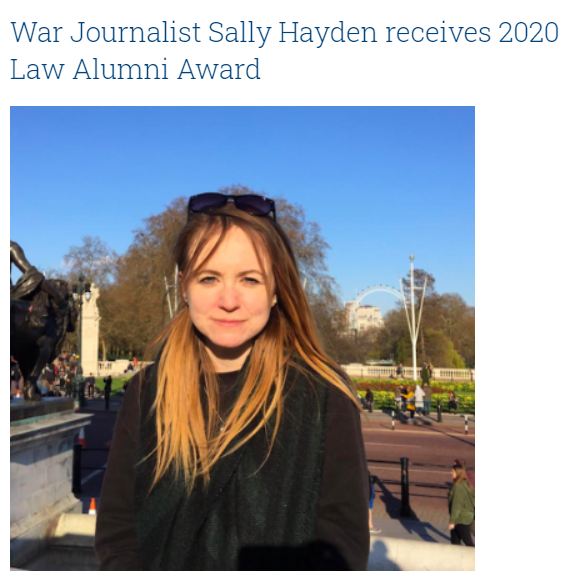 Check out our J4T fellow @sallyhayd receiving the 2020 Law Alumni Award for her excellent reporting. Congratulations!! >> https://www.ucd.ie/law/news/warjournalistsallyhaydenreceives2020lawalumniaward/ …pic.twitter.com/sSIBcOtczh