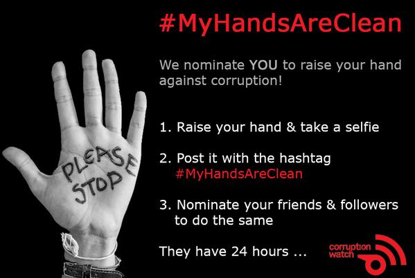 Join @Corruption_SA in South Africa to raise your hand against corruption, share your picture with #MyHandsAreCleanpic.twitter.com/kRo7AZdKhL