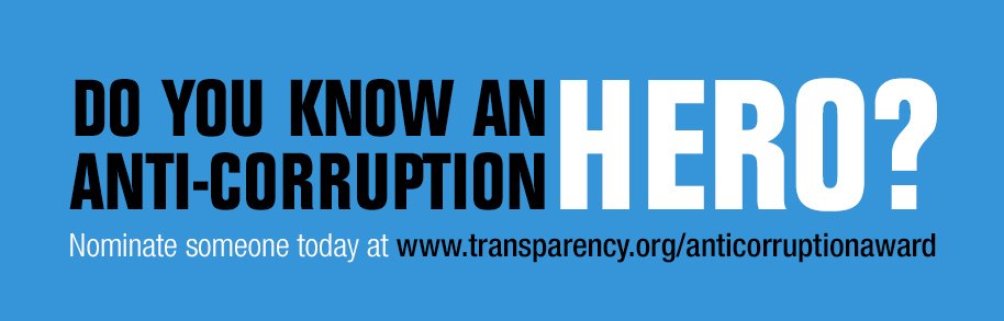 Do you know an inspirational corruption fighter? Nominate them for tn Anti-Corruption Award http://bit.ly/29a4T4p pic.twitter.com/MGDxWh8AAH