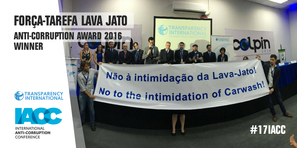 "We dedicate this award to every Brazilian citizen that feels powerless in front of #corruption" - Lava Jato Task Force #17IACC #Brasilpic.twitter.com/SKlipGWsI1