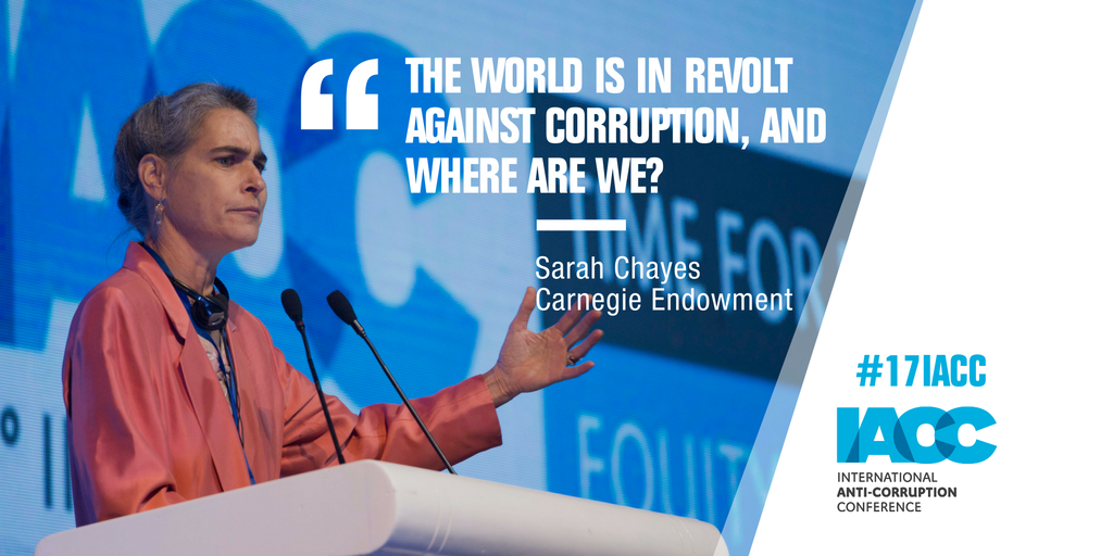 Sarah Chayes from @CarnegieEndow yesterday at ‘Time for Equity’ plenary #17IACC Read more ▶️ http://bit.ly/2gkS35y pic.twitter.com/BuGslpvcWy