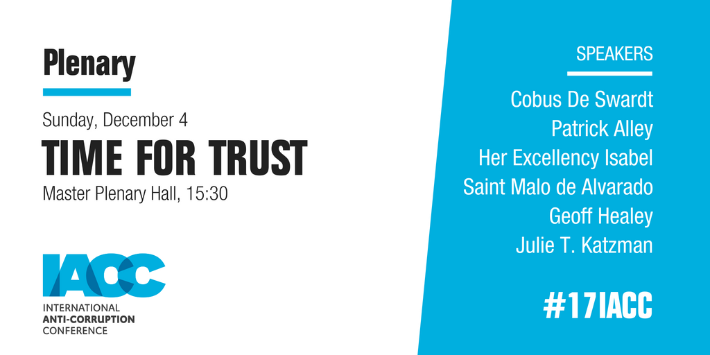 NEXT > Time for Trust w/ @IsabelStMalo @CobusdeSwardt @JulieTKatzman & Patrick Alley from @Global_Witness #17IACC Don't miss it!pic.twitter.com/LVgvu3lcUY