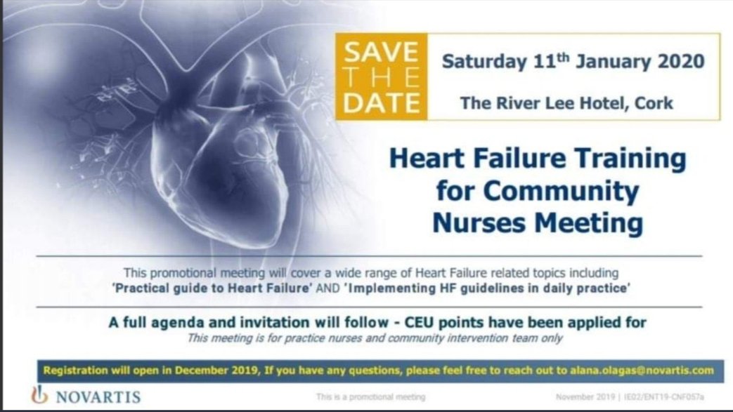 Education session for community nurses on heart failure. Delivered by heart failure nurses. Galway February 29th. Please RT and share widely