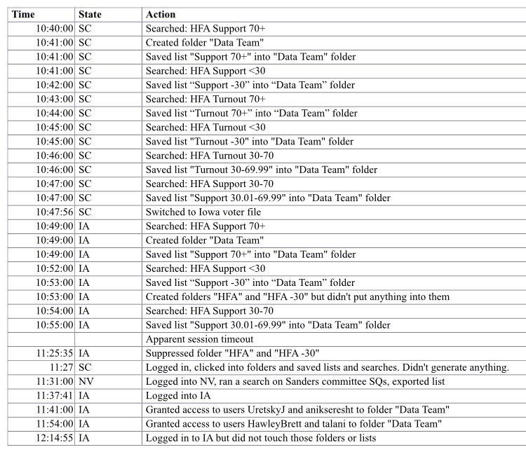 @IAStartingLine So you have no evidence of four users looking at Hillary stuff, just that 4 users were on VAN during very busy period? -