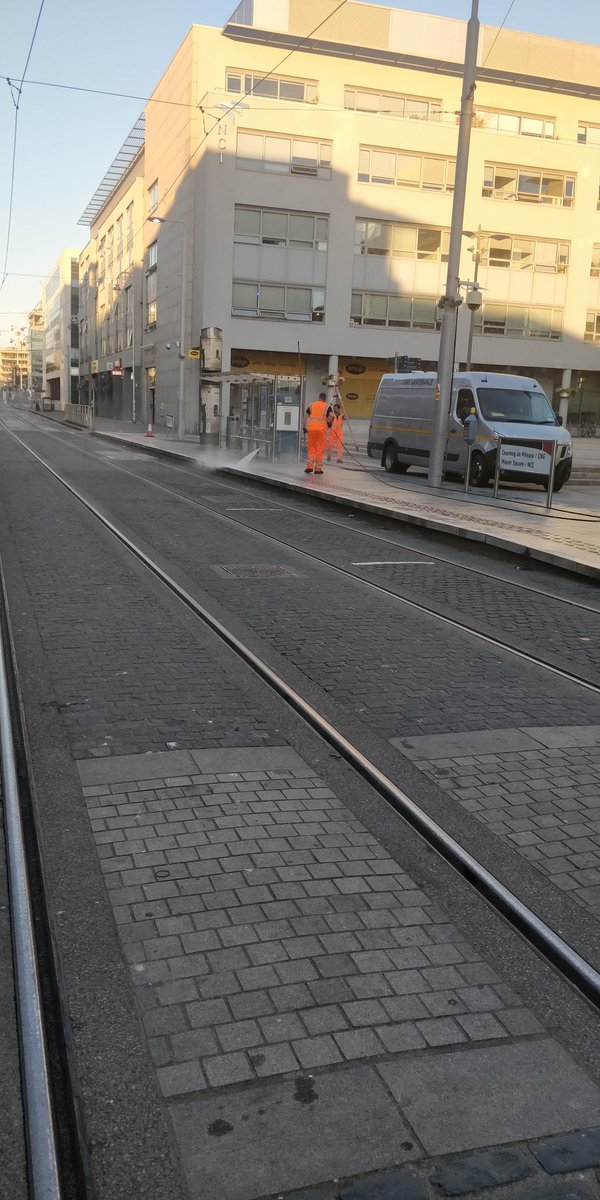 These lads flat out wasting water cleaning a Luas stop.. where's Joe Duffy when you need him??