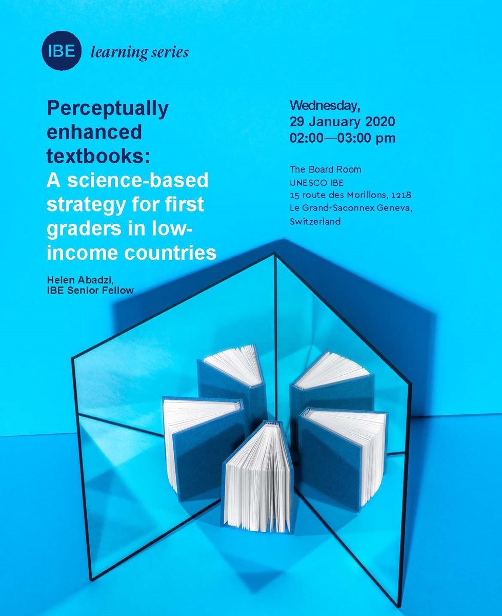 @IBE_UNESCO TODAY for a Learning Series event: Perceptually enhanced textbooks: A science-based strategy for first graders in low-income countries. Helen Abadzi presents a strategy to improve test scores dramatically in writing systems, including Arabic, Telugu, and Dari.pic.twitter.com/To3OvBaRMJ