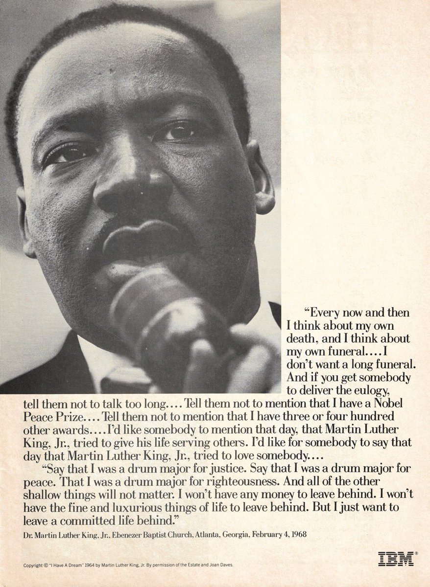 While sifting through magazines for collage material I´ve found an @IBM advertisement from @EBONYMag’s from January 1986 issued to commemorate Dr. Martin Luther King, Jr.’s legacy. TODAY is Martin Luther King #MemorialDAY This is what he wanted his legacy to be:pic.twitter.com/gr1vsTZnSZ