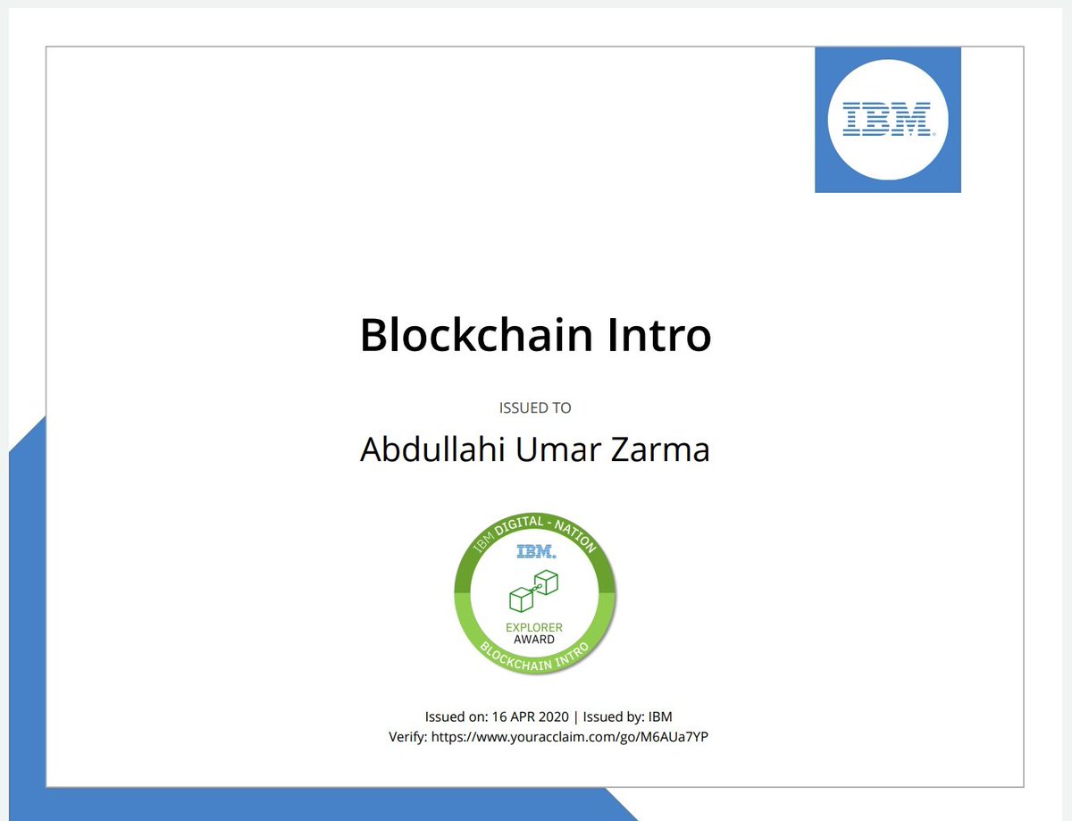 6 International Business Machine (IBM) certificate Down. Thank you @DrIsaPantami @FMoCDENigeria @IBM for giving me the opportunity to explore more on this field of morden technology skills with out you all I couldn't have done it. It's quiet impressive and educative. 👍pic.twitter.com/Ro3z7pfHxp